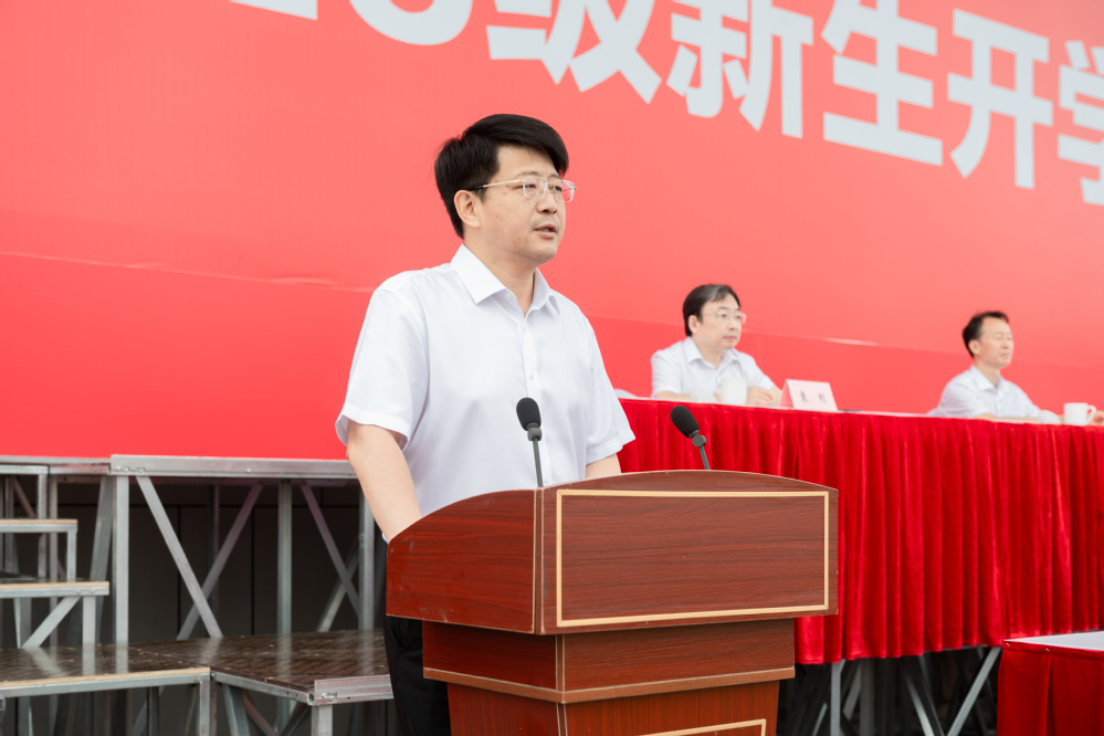 校党委副书记、校长周春光以《锤炼卓越才干勇担强国之任 在推进中国式现代化建设中成就青春梦想》为题致辞,他在对新生致以祝贺和欢迎的同时,勉励全体新生作为学校升格后的首届学子要志存高远,心怀鸿鹄之志;实干笃行,锤炼过硬本领;深植沃土,厚植文化底蕴。希望同学们以青春之我,融入时代洪流,在传承中创新,在坚守中超越,于浩瀚书海中求真知,于实践磨砺中壮筋骨,以昂扬奋发的精神面貌和“强国有我”的使命担当,勇立时代潮头,在国家发展与民族复兴的伟大实践中挥洒青春、建功立业,用奋斗和实干成就青春梦想。