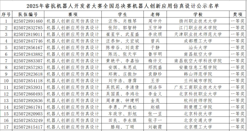 近日,睿抗机器人开发者大赛机器人创新应用仿真设计总决赛在山东理工大学圆满落幕。本次大赛吸引了北京理工大学、北京交通大学、汕头大学等全国200所高校224支顶尖队伍同台竞技。我校机械工程学院学子首次组队参赛,在“机器人创新应用仿真设计”赛项中发挥出色,荣获全国一等奖第一名。