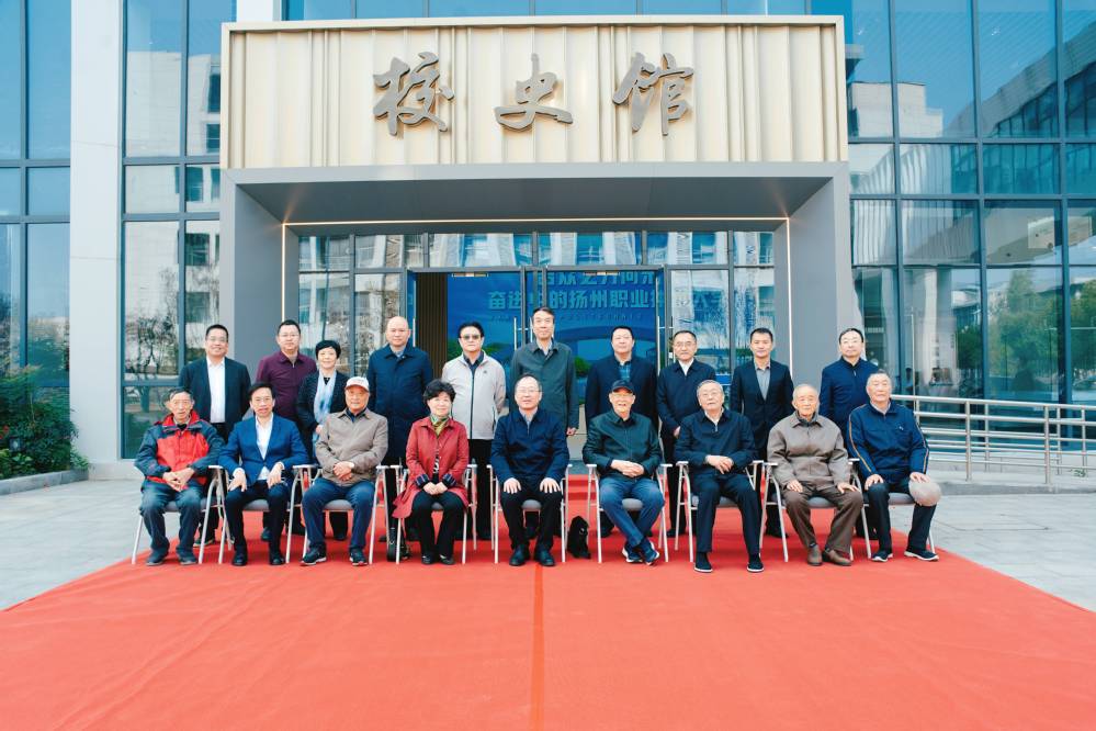 此外,一行人还参观了刚刚落成的校史馆。馆内的珍贵照片、实物展品与详实文字,生动还原了学校合并前17所学校和1个研究所筚路蓝缕的办学历史,也展现了合并办学后,全体扬州职大人团结一心、锐意进取所收获的辉煌成就。老领导们对学校精心筹建校史馆、系统梳理办学历史的做法表示赞赏。参观结束后,全体人员在校史馆门前合影留念。