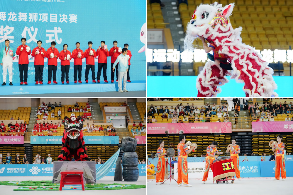 全国运动会是我国规格最高、规模最大、竞技水平最高的综合性体育盛会,汇聚了全国各地的顶尖运动健儿。本届南狮项目比赛竞争激烈,堪称“狮王争锋”。在南狮自选项目决赛中,由8名运动员组成的江苏省南狮队与11支劲旅同台竞技。其中6名主力队员来自我校,包括唐明森、张桂堂、胡苏瑞、李凯、刘家瑞和贾礼云哲。梅花桩上,队员们身手矫健,闪转腾挪,以高难度的技巧、标准的动作和极具神韵的狮形狮态,最终赢得评委认可,摘得铜牌。紧接着的南狮传统项目比赛中,面对全国12支参赛队伍的激烈角逐,江苏队再以8.90分的优异成绩夺得铜牌。参赛的8名选手中有秦雨杰、王银何、袁子涵、张相军、高尚钦和吕崇源等6名我校学子。