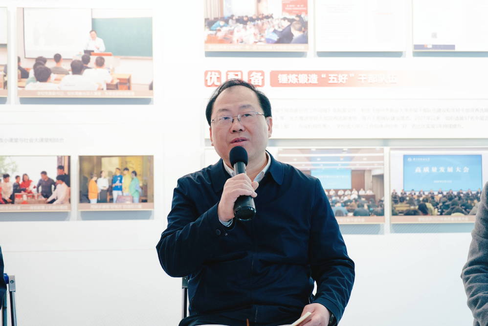 在校史馆座谈区的面对面活动中,学生代表踊跃分享了参观校史馆的感悟,结合自身的成长畅谈了现阶段遇到的困惑,也为学校的发展提出了许多宝贵的想法和建议。信息工程学院的李妍同学激动地说:“虽然校史的照片中没有我的身影,但是作为见证者,我觉得无比自豪,我会以校史精神为指引,用自身的努力锤炼本领,把个人成长与学校发展紧紧相连,用实际行动为学校发展增添属于我们这一代人的崭新篇章。”校领导针对学生提出的诉求和建议予以肯定,并现场交办相关职能部门进一步跟进落实。