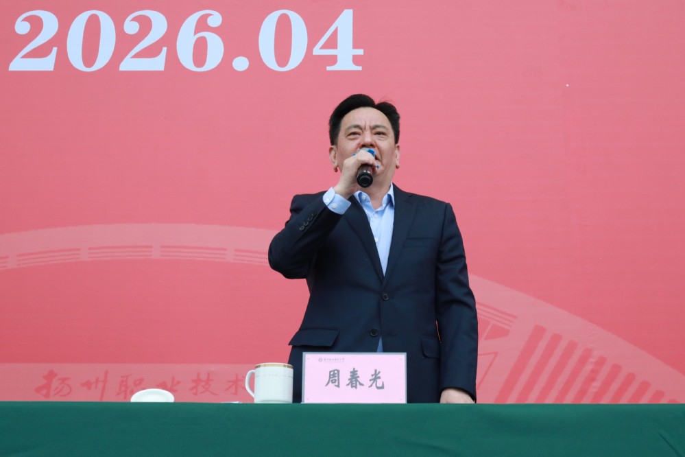4月9日至10日,学校在瘦西湖校区运动场举行2026年田径运动会。校党委书记马顺圣致开幕辞,党委副书记、校长周春光宣布扬州职业技术大学2026年田径运动会开幕。全体校领导,各部门、学院负责人出席开幕式。开幕式由校党委委员、副校长花军主持。
