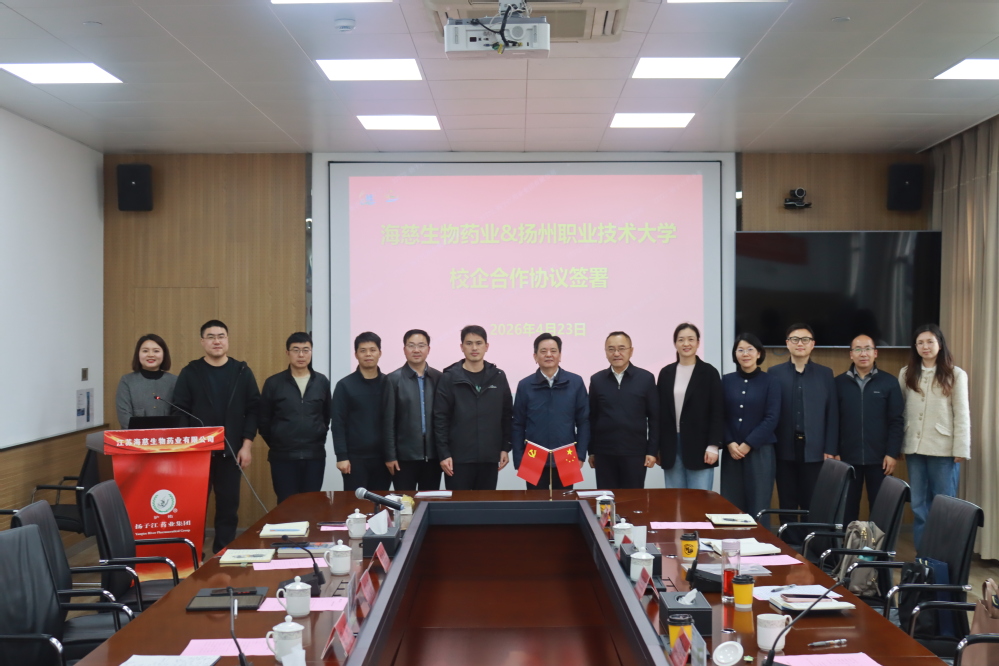 4月23日下午,我校与扬子江药业集团海慈生物药业有限公司校企合作签约仪式在海慈生物药业有限公司举行。校党委副书记、校长周春光出席并致辞,海慈生物药业有限公司厂长赵东,校党委副书记陈亚鸿参加活动。